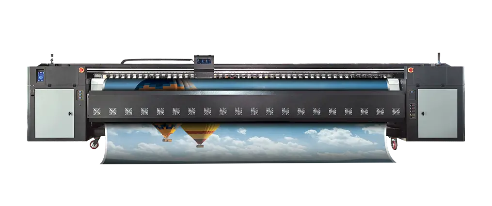 Impressora profissional Firejet RACE 520 Solvente, uma impressora com design robusto capaz de produzir impressões de qualidade e com alta capacidade de produção. Disponível nas configurações de cores CMYK. Equipada com 4 a 8 cabeças KM 1024i/13pl.